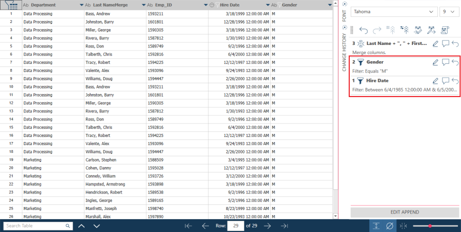Use this functionality to trim the records displayed on a table so that you can work with only the data that you need. Columns that have been filtered show the filter icon to the left of the column name.