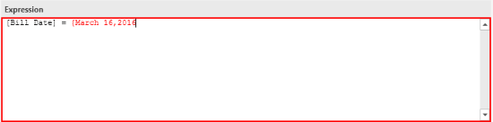 Date values must be enclosed in braces as in {June 17, 2001} or {03/28/98}. Dates must fall in the range between January 01, 1900 and December 31, 2400.