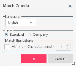 Set the language to be used in matching by choosing from the options in the drop-down list. The language options available are English, French, and German.
