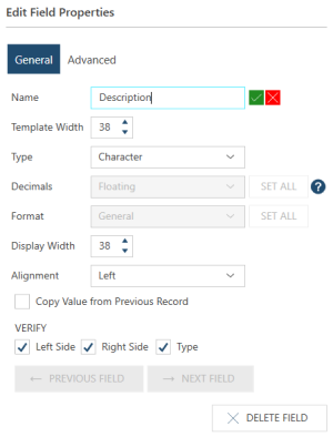 All fields are described by a set of properties that make it unique from other fields. These properties are specified in the Edit Field Properties portion of the Template and Field Properties panel when a field is selected in the Sample text line. Use the guide provided in Input Field Properties to modify the properties of your fields.