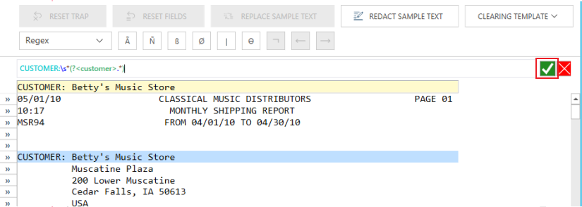 Consider the following regex traps that may be used to trap the Customer field of Classic.prn: