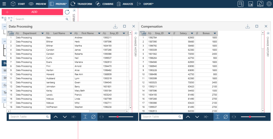 Monarch Data Prep Studio allows you undock a table from the main interface. This allows you to: