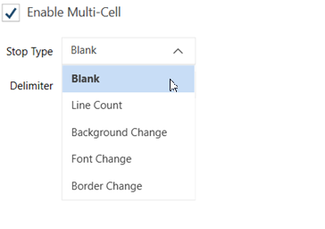 The stop type tells Worksheet Design the end of the multi-cell value. This can be: