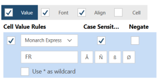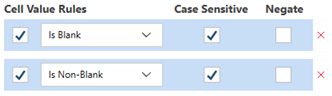 Case Sensitive to ensure that text values are strictly applied with respect to letter case. For example if your value is Starts With "NORTH" and Case Sensitive is checked, values that start with "north" will be ignored.