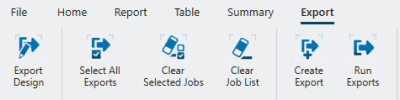 This ribbon will help you define, modify, and run exports.