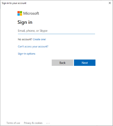 Enter the information required to log into your Microsoft account.