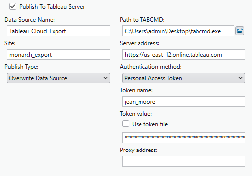 Check the box for Publish to Tableau Server.