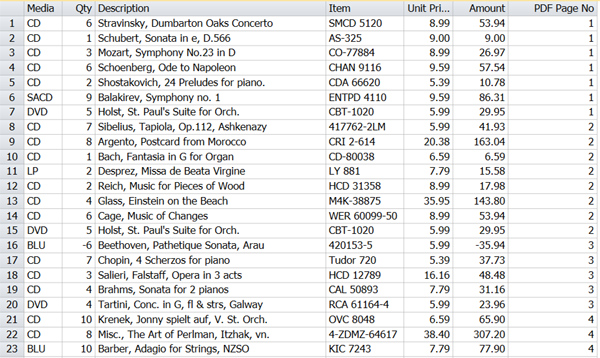 On the table, the result is a PDF Page No column (last column on the right in the example below) displaying a page number for each row on the table: