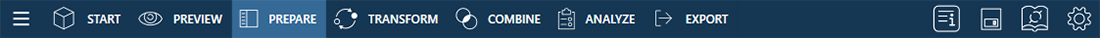 The Monarch Data Prep Studio toolbar includes several tools, each of which allow you to carry out a specific action towards completing data integration, preparation, and transformation.
