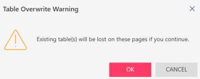 Note that when Auto Define is applied to capture tables, all previously defined tables are overwritten with the auto-defined ones. A warning displays for awareness before you can proceed.