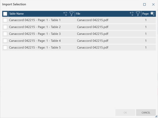 A dialog box will allow you to select the tables you want to import.