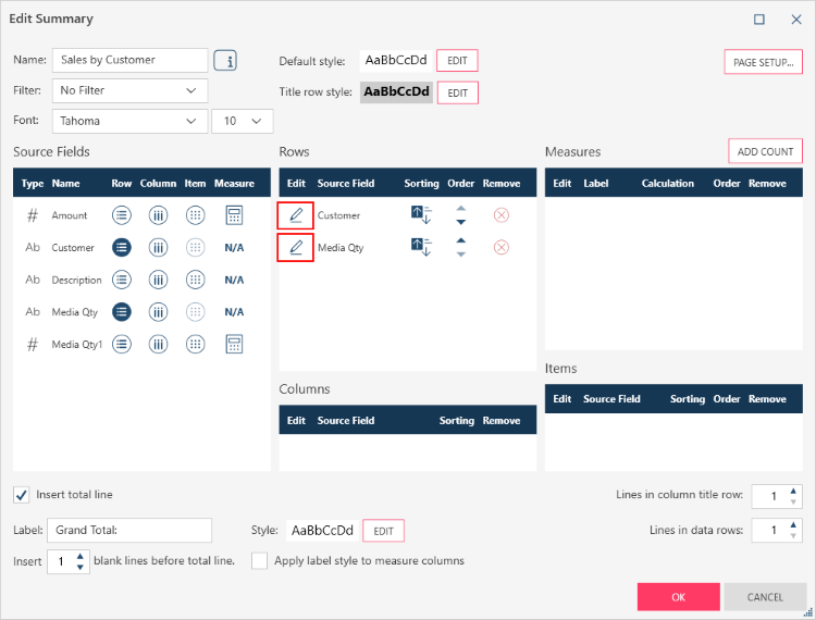 Select the summary with measure field names you wish to modify and then click Edit Summary.