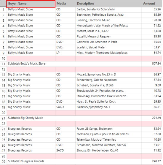 When Monarch Data Prep Studio builds a summary, it assigns the row, column, and measure field names as column titles in the summary matrix. You may use these names or you may modify the column titles to provide more descriptive names.