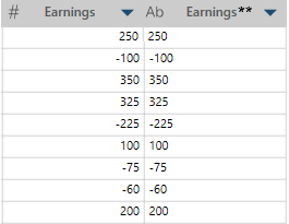 In this example, Earnings is the original number column and Earnings** is the converted column.