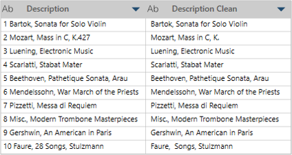 In this example, Description is the original column, and Description Clean is the new column after Remove Numeric Characters is applied: