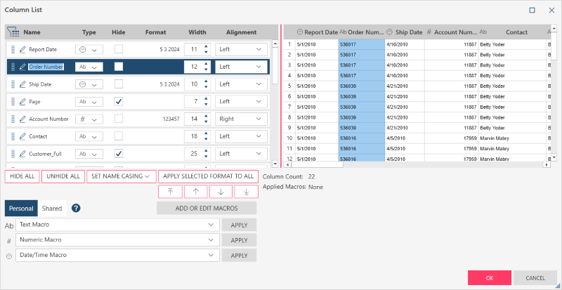 Double-click a column's name on the Name column to make that column's name editable and then enter a new name: