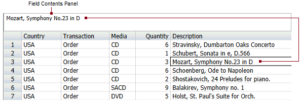 Show Field Contents displays the Field Contents panel at the top of Table View. The Field Contents panel shows the value of the currently-selected field. This panel is useful for viewing memo and long character fields whose contents may not normally display completely on a table cell.