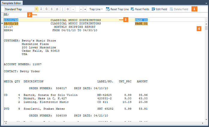 Displays a sample line from the report. This sample line is used as the basis for defining the trap. Select a sample that best represents the particular line type (e.g. report detail or report header) of the report. |