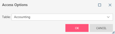 For example, if your data source is a Microsoft Access file containing three tables, you would use the Access Options dialog to select which of these three tables should be added to your workspace. If you decide to use a different table from the same data source at a later time, you would use the same explorer to discard the old table and select a new one.