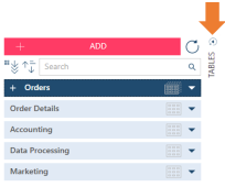 You can click on the drop-down arrow located to the right of each table to display an action menu. |