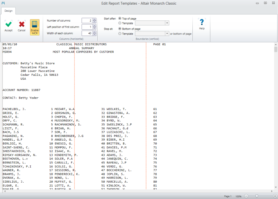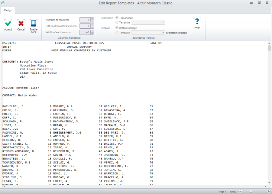 Click the Accept to save the current MCR settings. Monarch Classic returns you to report Report Design.