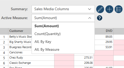 Click the Active Measure drop-down and then select the measure you wish to view for your summary. Note that you can view all measures either by key or by measure.