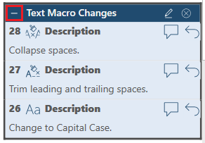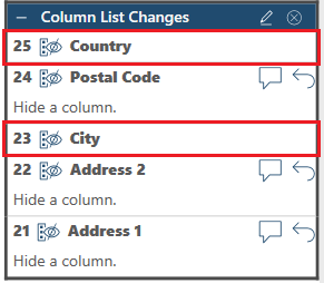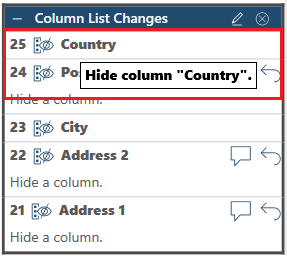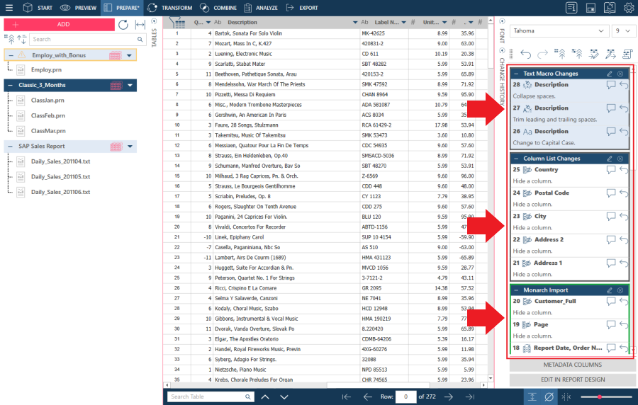 For example, changes associated with a model and report in a project created in a Monarch Classic and opened in Data Prep Studio will be grouped as "Monarch Import" changes. When a text macro consists of multiple changes (e.g., trim leading and trailing spaces + change to capital case), these changes will be grouped as "Text Macro" changes. As another example, all changes made from the Column List dialog will be grouped as "Column List Changes."