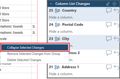 If, instead of collapsing an entire change group, you wish to collapse individual changes in the group, use CTRL+Click to select the changes to collapse and then right-click on your mouse. Click Collapse Change/Collapse Selected Changes from the options that display.