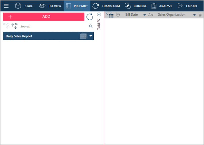 You can Prep, Transform, and Combine data only if you select the main table. You can only view the data if you select a report (you cannot Prep, Transform, and Combine data).