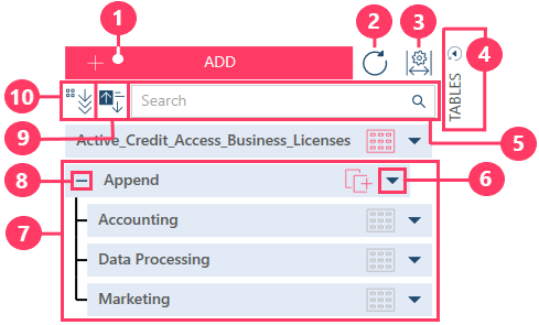 Hide/Unhide Table Panel Click this icon to hide or unhide the table list panel. |
