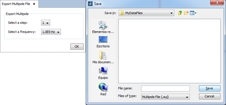 Select 'Show Results --> Export Multipole File' option to save the multipole file on a selected path for use on other simulations. Previous, select the step and frequency for the multipole file.