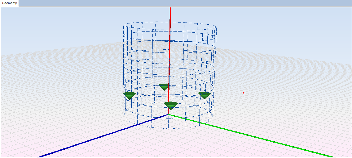 Select 'Output --> Observation Points' option. To add a cylindrical visualization, select 'cylinder' on the selector of 'Geometry Types' section and click on 'Add' button. The cylinder parameters panel will appear, then configure the values as the next figure show and accept it clicking on 'OK' button.