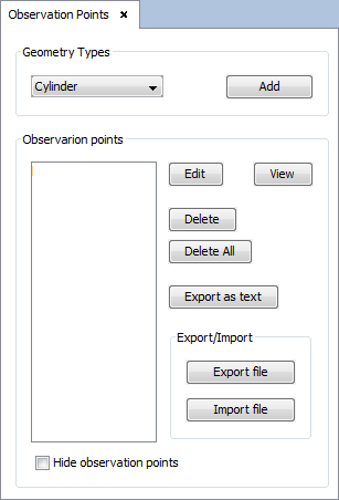 Select 'Output --> Observation Points' option. The following panel will appear.