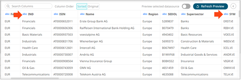 . The new column names are displayed on the Data Preview.