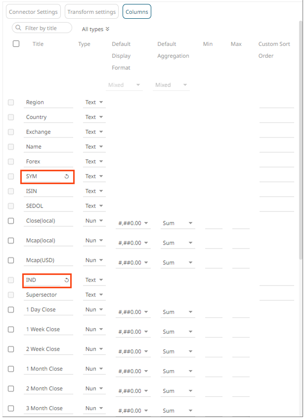 NOTE: User-defined columns are not included in the list.