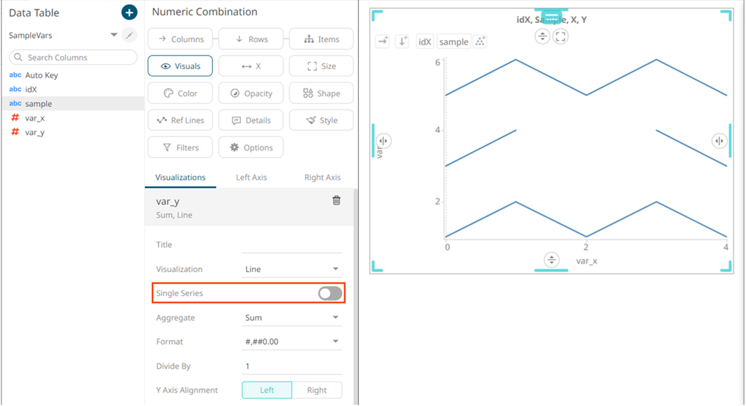 - Switch off Single Series for the Y-axis variable