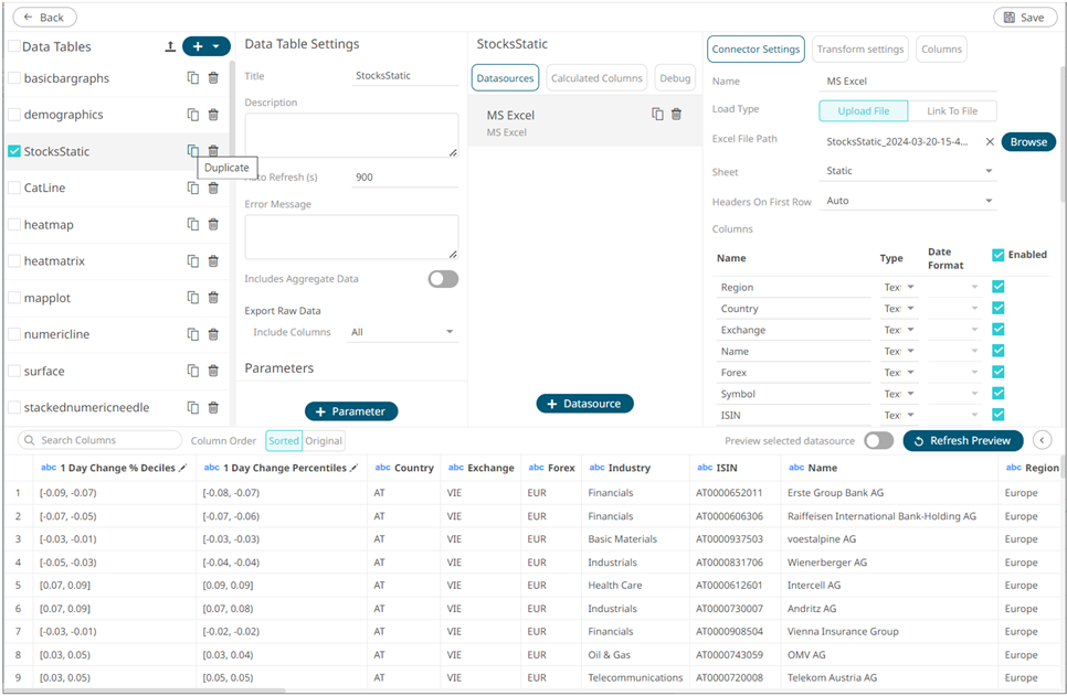 Select a data table and click the Duplicate