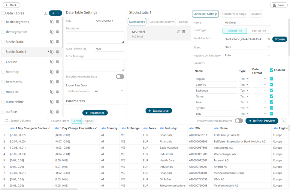 button of a data table in the Data Tables list.