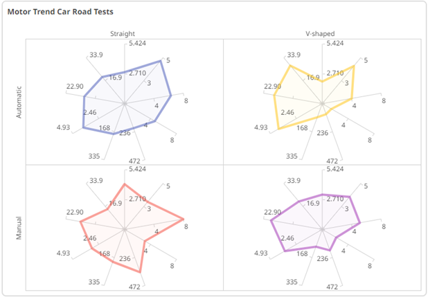 Cross tabbing a radar into multiple copies in columns based on one or several text dimensions (data columns of type text). |