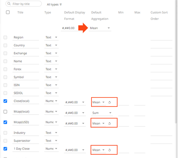 - Click the drop-down list and select the Default Aggregation for the numeric columns. Default is Sum.