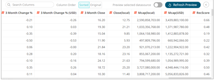 . The new default aggregation for the numeric column is applied and displayed on the Data Preview.