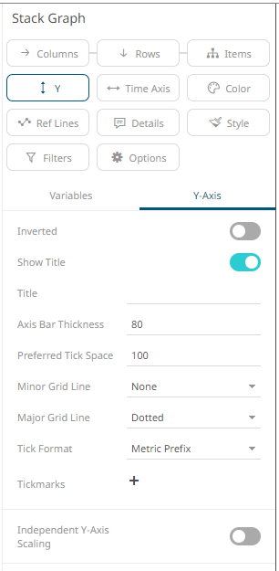 Other visualization-specific properties can be set by clicking on the Y-Axis variable drop area and then selecting the Y-Axis tab: