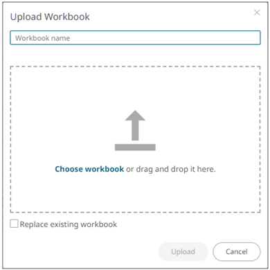 Users with a Designer role can upload and publish workbooks to the currently selected folder in the Workbooks page.