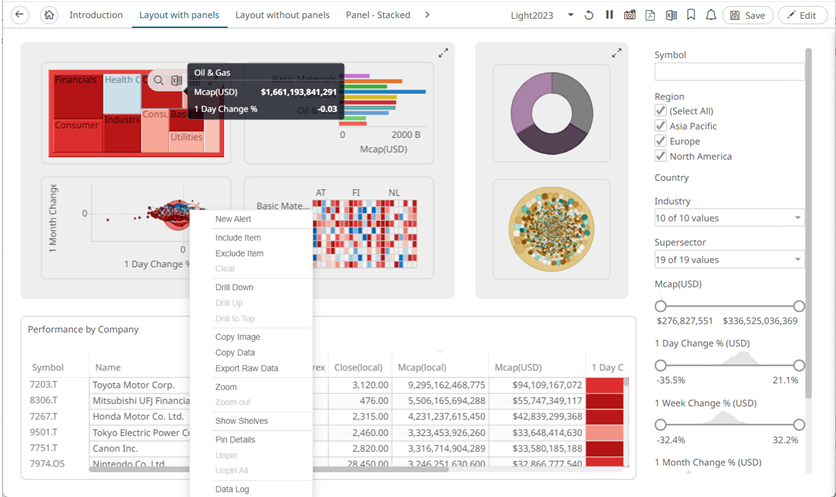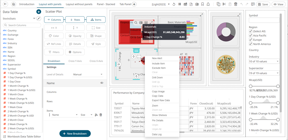 Allows you to build dashboards by adding visualizations, filters, action controls, legends, labels, and images based on the data tables that were added.
