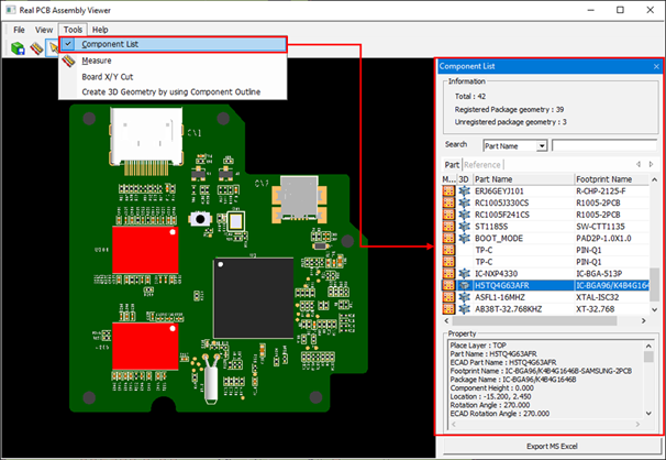 - Component List: Search the parts used in the design.