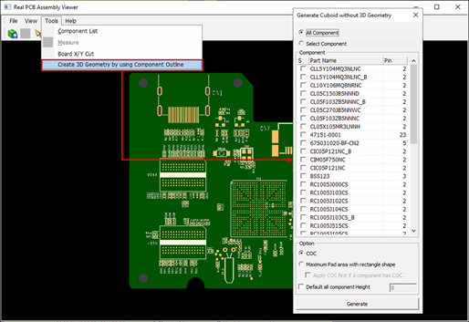 - All Component: Generate 3D geometry for all components in the PCB.