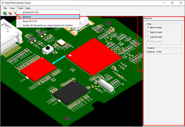 - Measure: This menu measures the distance between components.