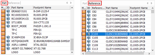 - Search: Search components by Part Name or Reference Name.