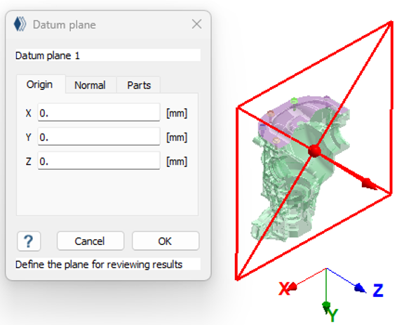 デフォルトでは、データム面はインポートされたモデルの原点座標(0, 0, 0)に配置されます。Figure 2.