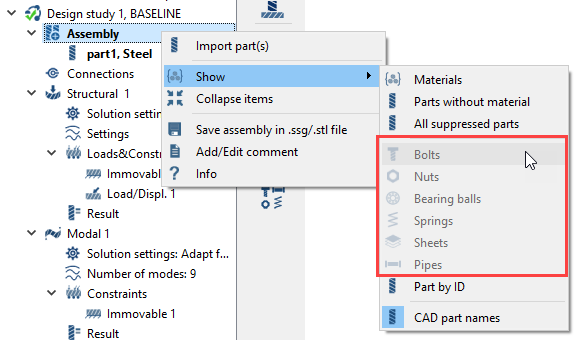 请确保零件已正确分类(螺栓、螺母、弹簧等)。